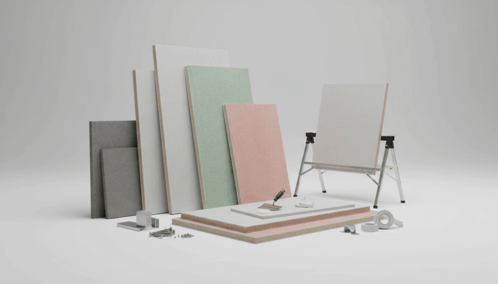 Vigtige valgparametre er tykkelse, kantprofil og mål. Standard gipsplader fås ofte i 6, 9, 12 og 15 mm, mens vådrumsplader og brandhæmmende varianter også findes i passende dimensioner. Vælg vådrumsplader til badeværelse og køkken, brandhæmmende plader til rum med højere krav og lydisolerende eller cementbaserede plader til særlige akustik- eller fugtforhold. Overvej miljø, monteringsprincip og nødvendigt tilbehør som skruer, spartelmasse og hjørnebeslag.