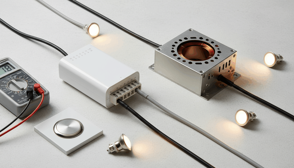 Du vælger mellem elektroniske og magnetiske løsninger, og den rette type afhænger af installation, støjkrav og miljø. Elektroniske transformere er ofte kompakte, effektive og dæmpbare, mens magnetiske modeller kan være mere robuste i visse miljøer. Overvej samlet wattforbrug, dimming og driftstemperatur – særligt i varme rum eller ved høj belastning.
