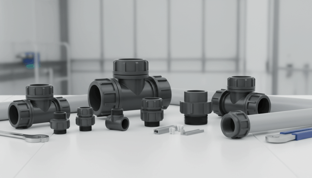 Industrielle plastikfittings er robuste forbindelser til plastrør i VVS-, proces- og bygningsprojekter. Kategorien inkluderer gevindovergange, tees, vinkelovergange (90° og 45°), samlemuffer, endemuffer, reduktioner og overgangsstykker samt specialfittings som plastklips og montageskinner. Fittings fås i flere dimensioner (fra ca. 16 mm til 75 mm) og materialer med høj kemikalie- og varmebestandighed og leveres som kompressionskobling eller muffe-tilslutning og giver tætte, korrosionsbestandige forbindelser uden metal. Installation er enkel med almindeligt værktøj og giver fleksible løsninger til vand, dræn og procesinstallationer. Ved køb bør man overveje rørdiameter, tryk og temperatur samt miljøpåvirkninger og plads. For mere inspiration se WATTOO.DK og Elvvs.dk.