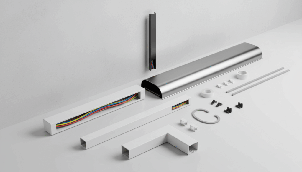 Kabelskjulere og kanaldeksler er løsninger, der skjuler kabler langs vægge, gulve og i kabelkanaler. Denne kategori omfatter væg- og gulvskjulere, kanaldeksler og tilbehør som endestykker samt hjørner, der giver en ren og sikker installation i hjem, kontor og installationer. Materialerne spænder fra plast til aluminium, og designet sikrer, at ledningerne ligger skjult og beskyttes mod støv, skader og snublefare.