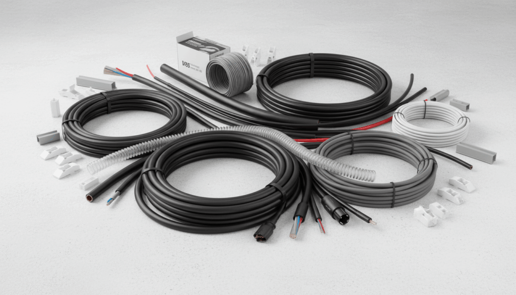Tilbehør som kabelbøjler og kabelkanaler gør installationerne sikre og overskuelige. Se efter varianttyper som halogenfri, temperaturbestandige eller vejrbestandige produkter og vælg dimensioner og farver, der passer til projektet. Billigelogvvs.dk og Elvvs.dk giver eksempler på erfarne leverandører af kabler og ledninger.