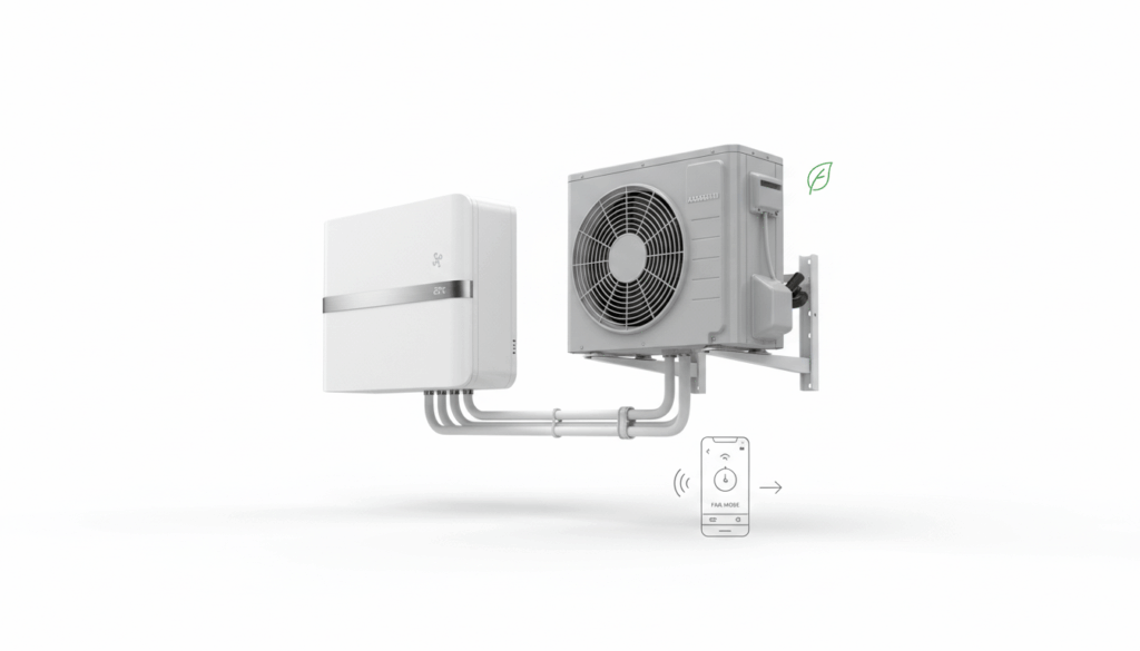 Luft-til-luft varmepumper er en effektiv løsning til opvarmning og nedkøling i hjem og mindre erhverv. De kræver ingen vand- eller radiatorforbindelser og fungerer med en udedel udenfor og en eller flere indedeler indendørs. Kategorien omfatter både enkelt split-systemer og fleksible multi-split-typer, der kan styre flere rum fra én udedel. Nøglefunktioner er inverter-teknologi, høj energieffektivitet og muligheden for fjernstyring via app og WiFi. Overvej kapacitet i kW, SCOP/COP, støjniveau og valg af refrigerant (R32).