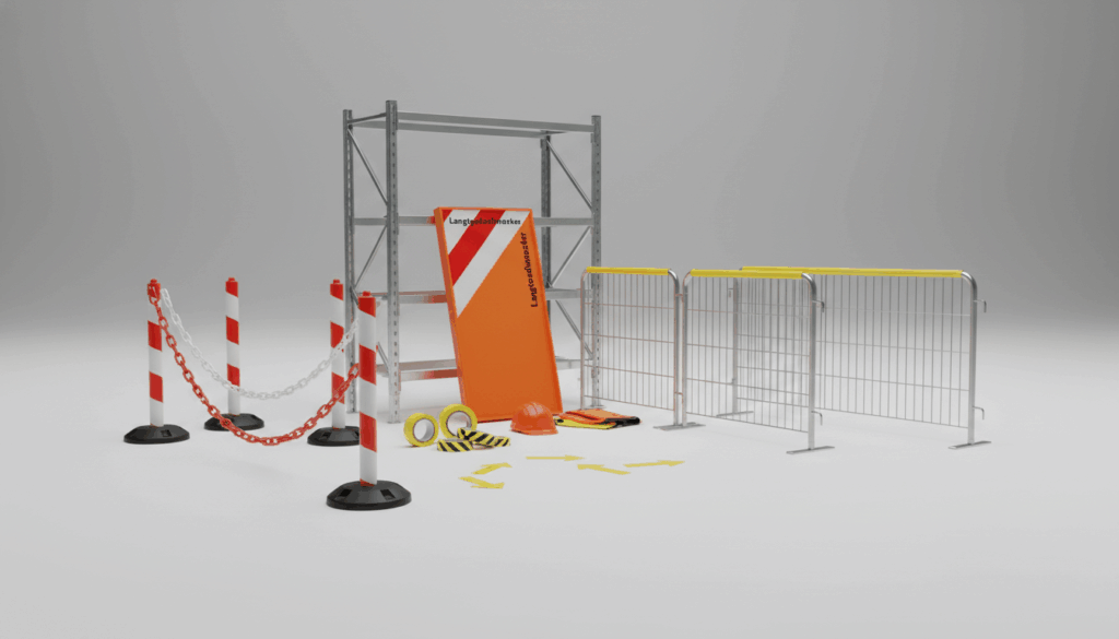 I denne kategori samles produkter til sikkerhed, afgrænsning og vejledning på arbejdspladsen. Mærkning og afspærring dækker alt fra midlertidige afspærringsstolpe-sæt med kæde og fødder til gennemgangshegn, Langtgodsafmærker, advarselstape og skridsikre gulvmarkeringer. Produkterne giver høj synlighed, holdbarhed og nem installation både indendørs og udendørs, og de kan være midlertidige eller permanente. Brug dem til farlige zoner, markering af trafikruter og arbejdsområder samt styre adgang og bevægelse på byggepladser og i lagermiljøer.