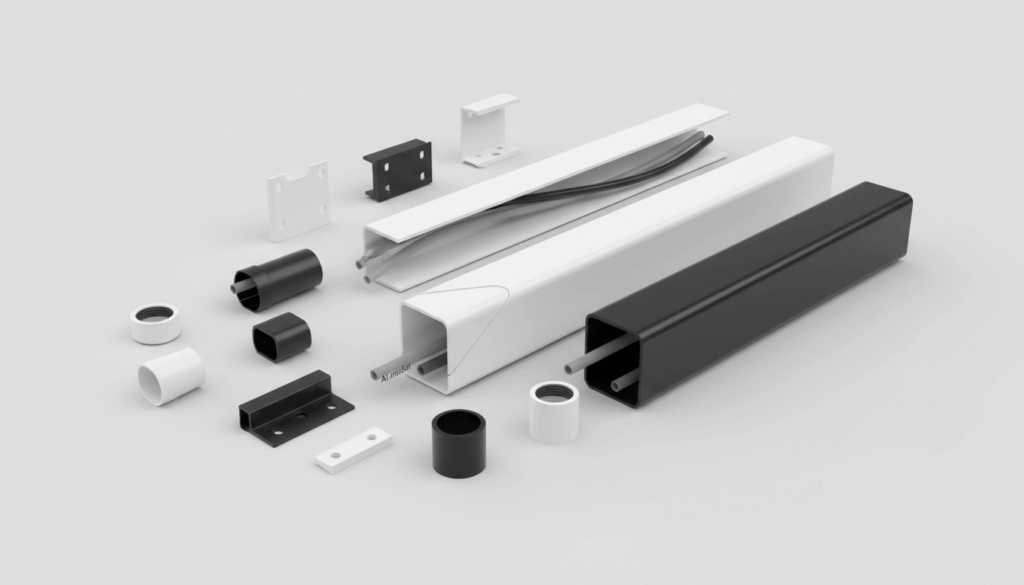 Ved valg af kanal og beslag bør du overveje dimensioner som 80 x 60 mm, længde (typisk 2 m), farve (hvid eller sort) og placering (indendørs eller udendørs). AI-indersider giver en renere finish.