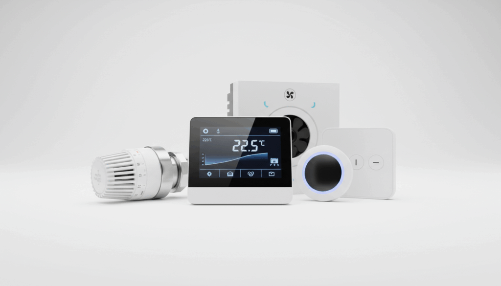 Eksempel på variationer: elektroniske termostater til rum, gulvvarmetermostater til gulvopvarmning, TRV-termostater til radiatorer og regulatorer til ventilatorer.