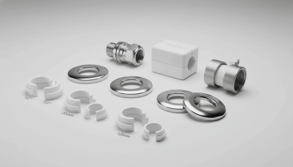 Variationer inkluderer rosetter til forskellige rørstørrelser (f.eks. 12–32 mm) og større 50–75 mm til afslutninger. Materialer som krom, rustfrit stål og plast passer miljø og budget. Delbare modeller og excentriske forskruninger giver fleksibel montering og nem justering. Overvej finish og holdbarhed, når du vælger roset og rosetbeslag til VVS og radiatorer.