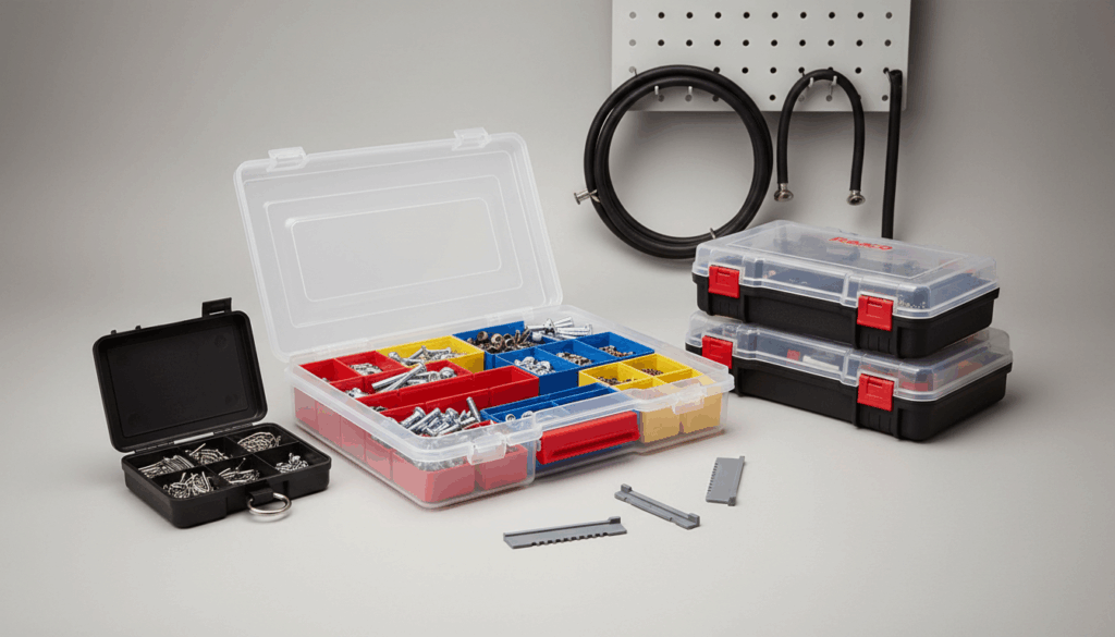 Når du vælger Sortimentskasser, tænk på hvor mange rum du har behov for, og hvor fleksible skillevægge skal være. Overvej også indkapsling, hvis du har støvede eller våde miljøer, og om kassen er let at transportere. Tjek også låsemuligheder, stabling og hvor nemt indholdet er at identificere gennem lågets gennemsigtighed. Indsatse og skillevægge giver ekstra tilpasning, så du kan optimere pladsen efter dine behov.