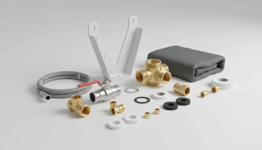 Typiske varianter inkluderer universelle unionsæt (tilslutning mellem pumper og rør), beslag til væg- eller dækselmontering samt trykregulerings- og check-ventiler, der hjælper med at styre flow og tryk i systemet. Vælg korrosionsbestandige materialer som messing eller rustfrit stål til udendørs brug og tjek kompatibilitet med din pumpe (gevindstørrelser som 1/2 tommer, 3/4 tommer eller 1 tomme).